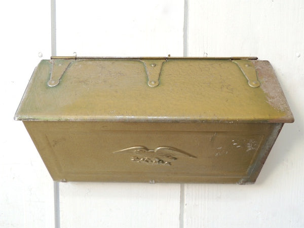 アメリカ西海岸・サンフランシスコで見つけました・・イーグルモチーフの横型・ゴールド色・メタル製・ヴィンテージ・メールボックスです。