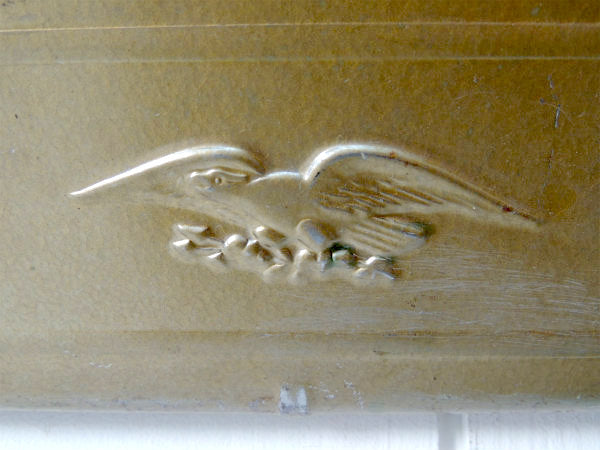 フロントにイーグル&フタ部分に蝶番のエンボスデザインが施されており、ミッドセンチュリー時代のスタイリッシュなデザインです。