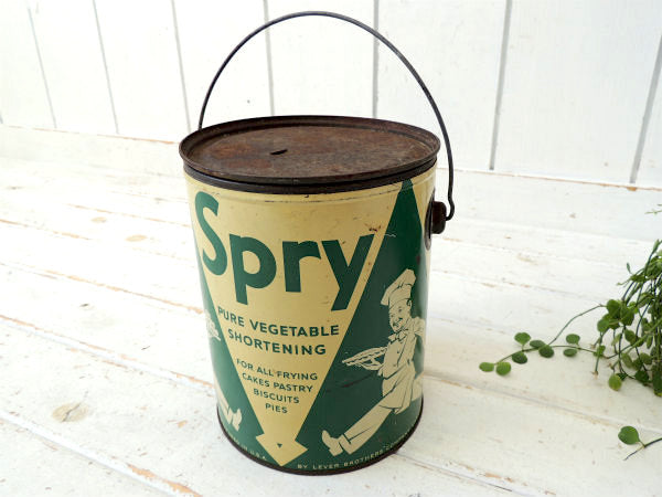 Spry ショートニング・ティン製・アンティーク・ラード缶・キッチン・USA・ケーキ・お菓子