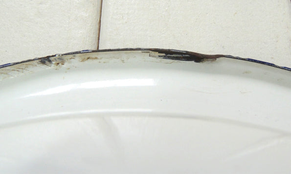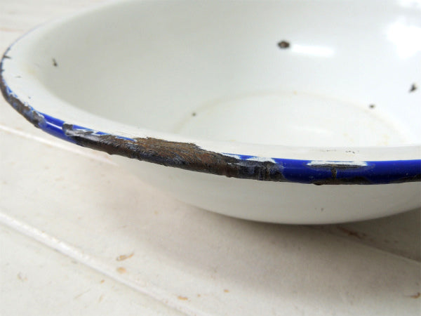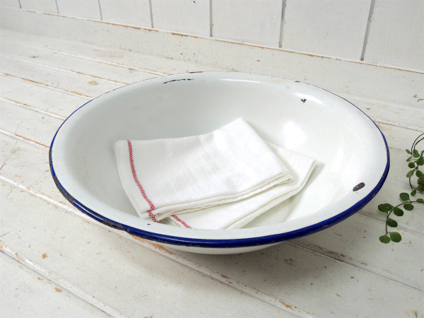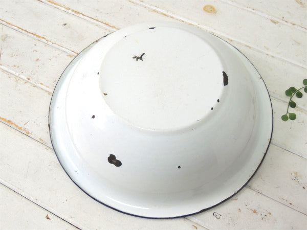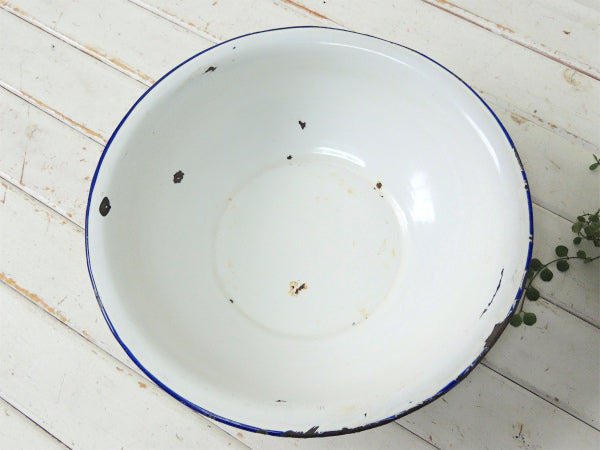 ホワイト×ブルー・シャビー・アンティーク・琺瑯タライ・ホーロータブ・ウォッシュタブ USA
