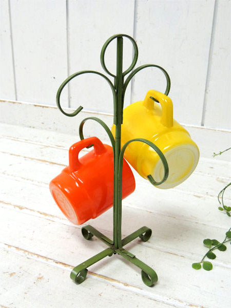 オリーブグリーン・ヴィンテージ・アイアン製・マグツリー・マグカップホルダー 4客用