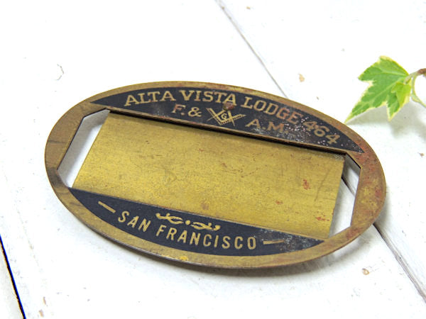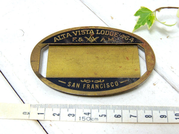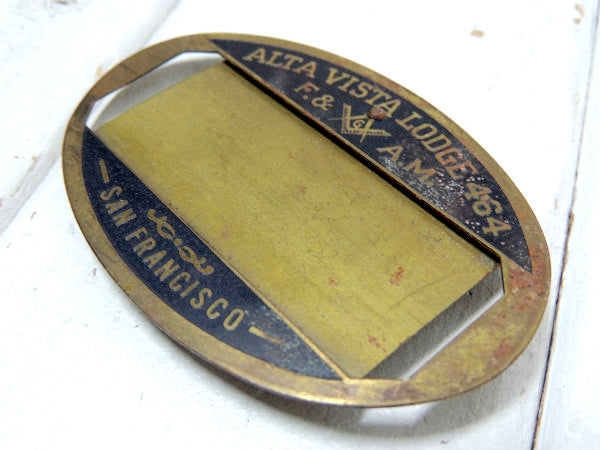 アメリカ西海岸・カリフォルニアで見つけました・・・''フリーメイソン'' ALTA VISTA LODGE 464 F.&A.M ーSAN FRANCISCOー Freemasonry・アンティーク・お洒落なデザインのネームタグ(名札・ブローチ)です。