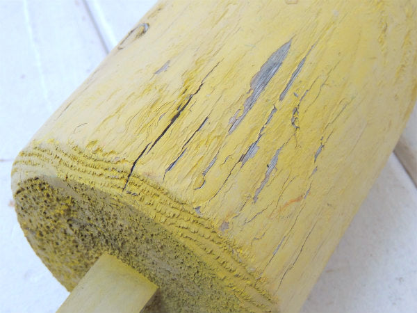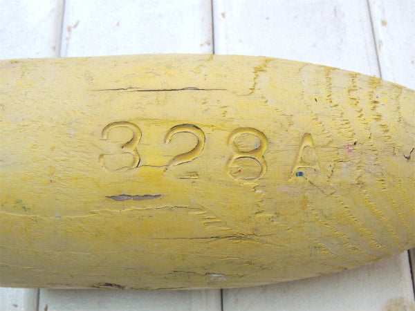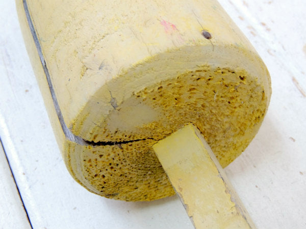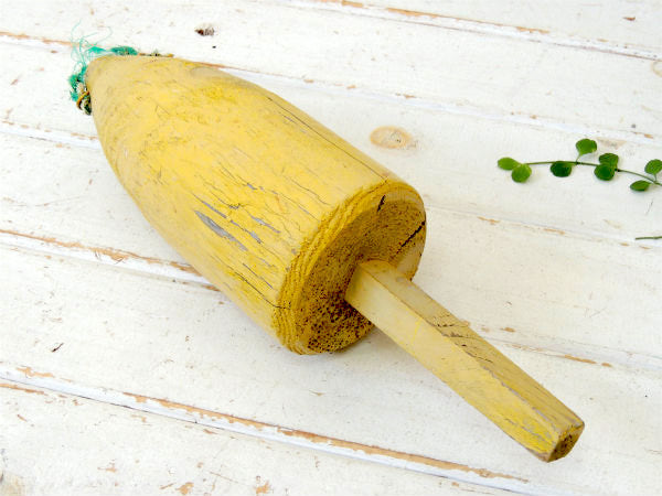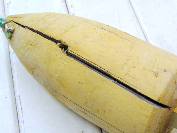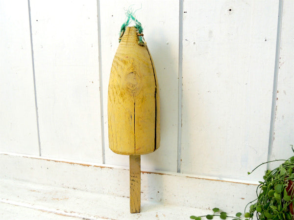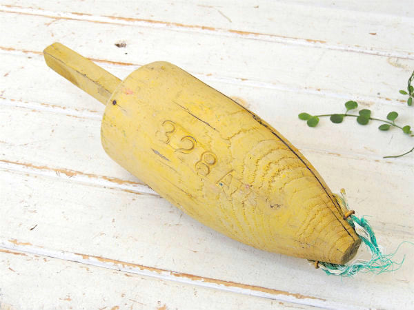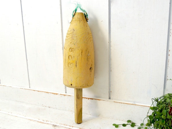 クリームイエロー・マリン・ナンバー入り・木製・ヴィンテージ・ロブスター・ブイ・トラップ・インテリア