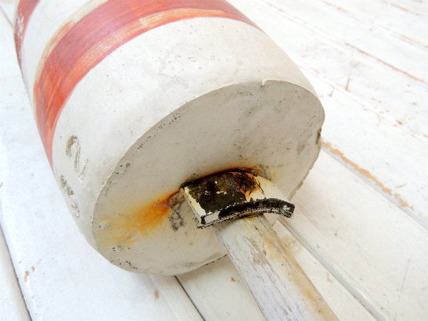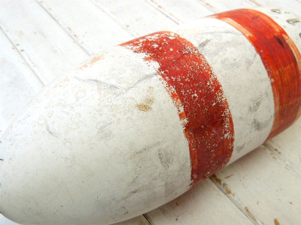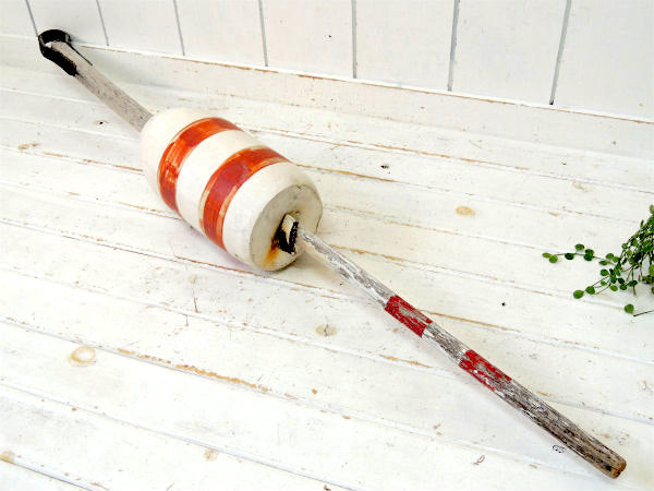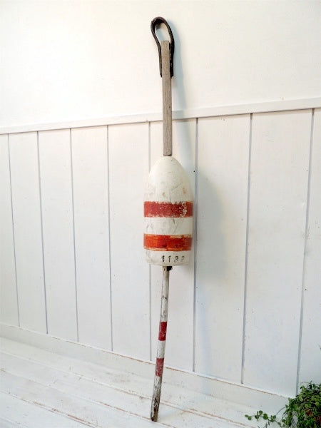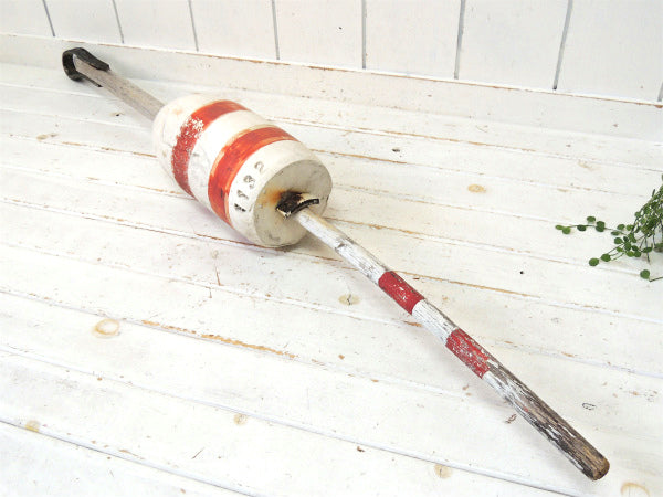 マリン・ナンバー入り・白×赤・ビッグサイズ・木製・ヴィンテージ・ロブスター・ブイ・トラップ・浮き