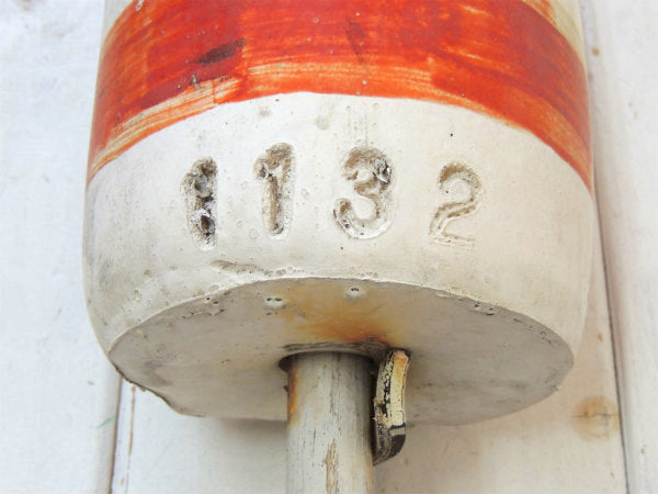 上下は木製、中央のブイは発砲スチロール製で、白×赤のペイントが施されており、下部にナンバー1132が刻まれております。