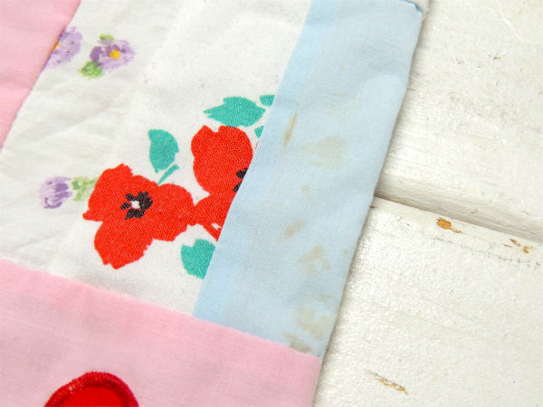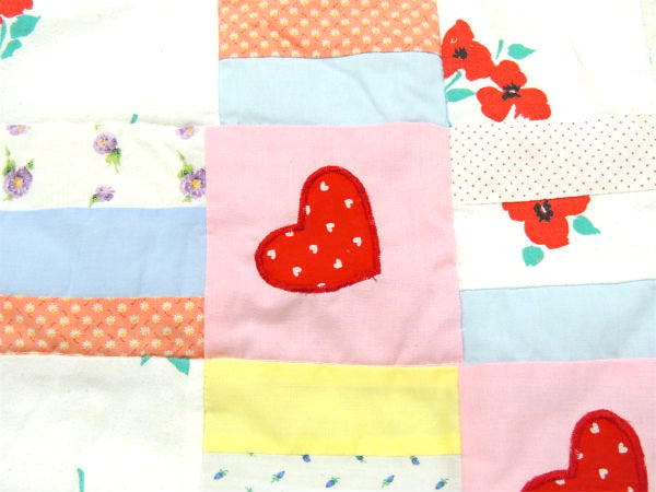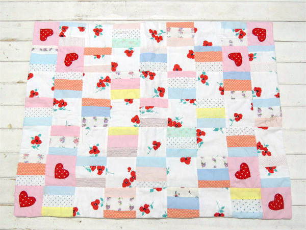 花柄&ハート柄&ゾウ柄・パッチワーク・ヴィンテージ・リバーシブル・ベビーマット・ハンドメイド USA
