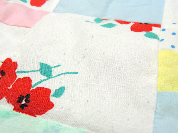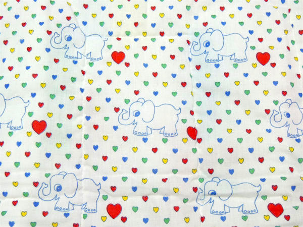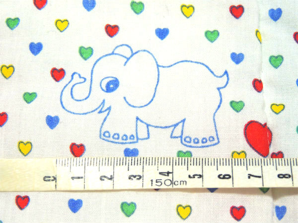 表面は、花柄&小花柄&ハート柄&水玉柄&無地柄のパッチワーク、裏面はカラフルなハート柄&ゾウ柄のレトロ可愛いプリントです。