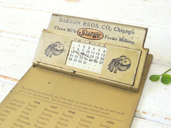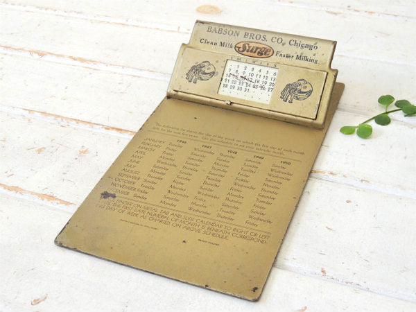 BABSON Surge ミルク 牛乳 カレンダー付き・メタル製・ノベルティ・40s アンティーク・バインダー・クリップボード