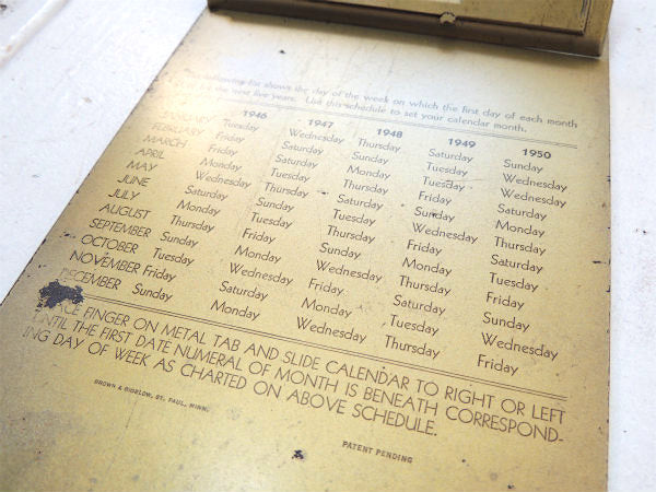 バインダー上には1946〜1950年の5年間のカレンダー設定曜日が記載されています。