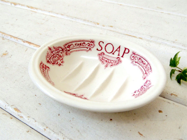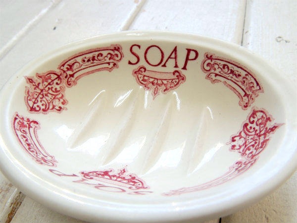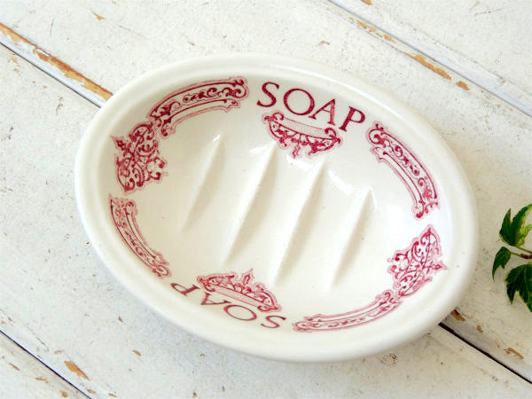 イギリス製『ROYAL CROWNFORD』の陶器製・アンティーク・ソープディッシュ(石鹸置き)です。