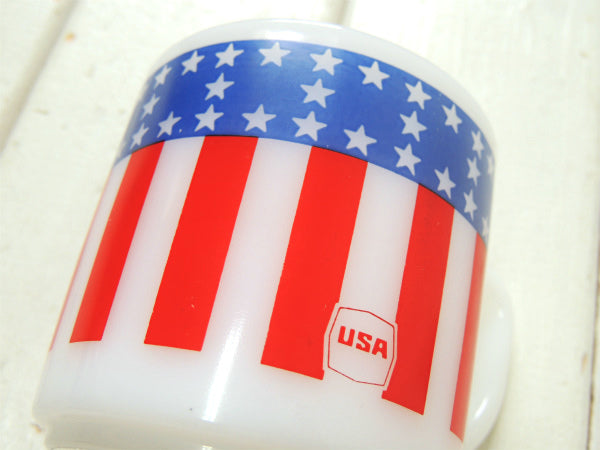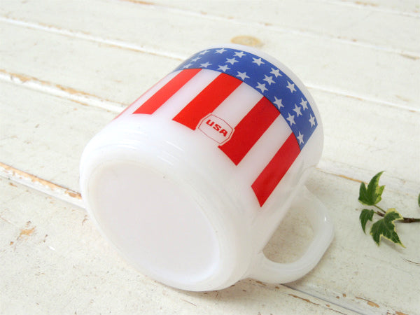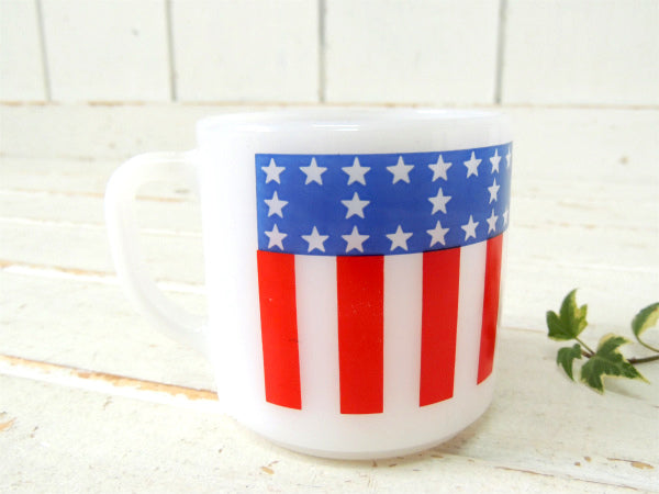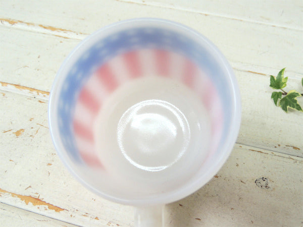 アメリカ西海岸・サンフランシスコで見つけました・・『FEDERAL GLASS COMPANY(フェデラルグラス)社』のミルクガラス製・アメリカンフラッグ柄・ヴィンテージ・マグカップです。