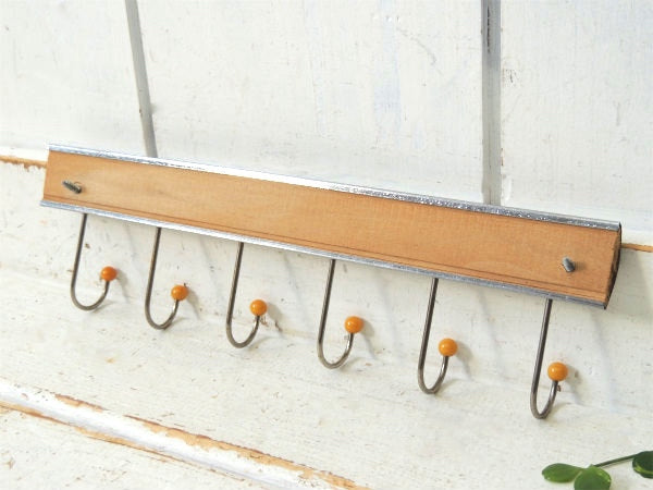 レトロデザイン・木製×メタル製・壁掛け式・ヴィンテージ・ウォールフック・壁掛けフック・6連フック