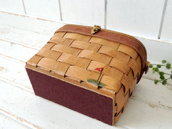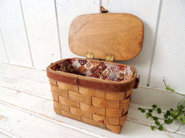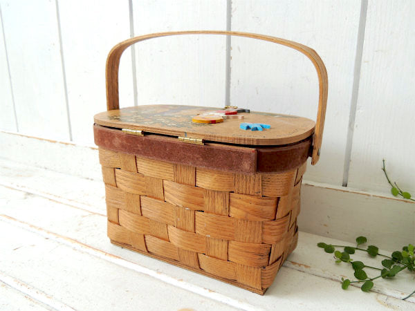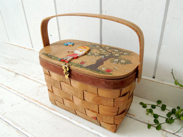アメリカ西海岸・サンフランシスコで見つけました・・レトロ可愛いハンドペイント(イラスト)が描かれたヴィンテージ・木製バスケットです。