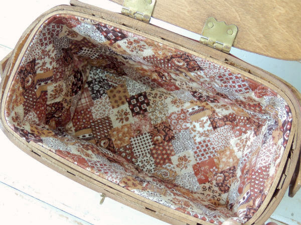 内張は、ブラウン系のフラワーパッチワーク柄のキルティング地です。