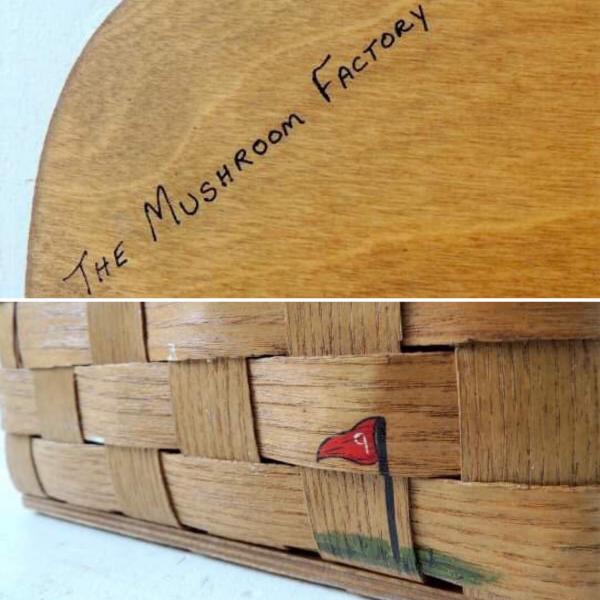 蓋右下にイラストレーターのサイン【JEANNE】、蓋裏に【THE MUSHHROOM FACTORY】と文字が入っています。