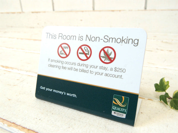 アメリカ西海岸、ロサンゼルスで見つけました・・”This is a Non-Smoking Room.... $250 Cleaning Fee...”マリファナ・禁止・卓上サイン・禁煙・サインプレート・看板・アドバタイジング です。