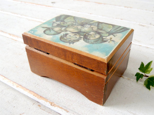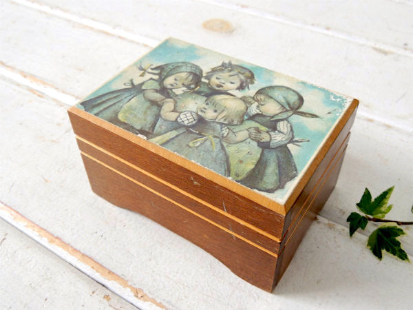 REUGE リュージュ・スイス・木製・レトロ 少女 モチーフ・ヴィンテージ・オルゴール・宝石箱