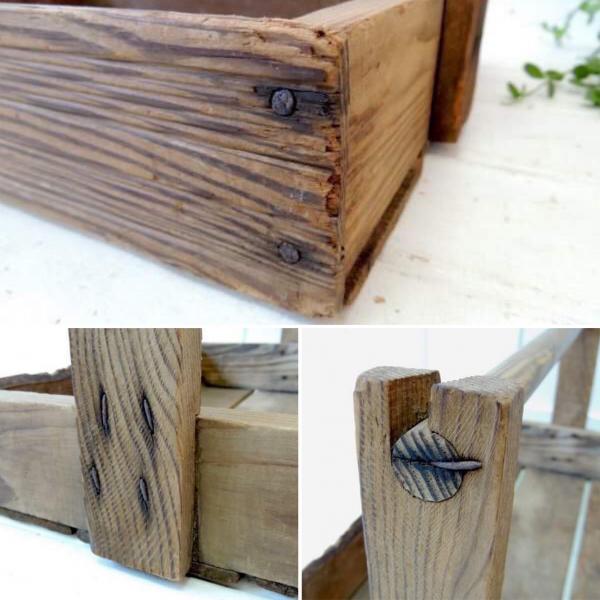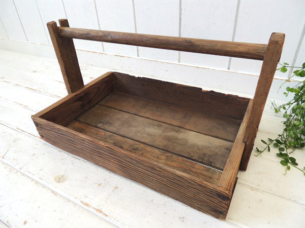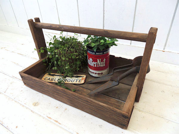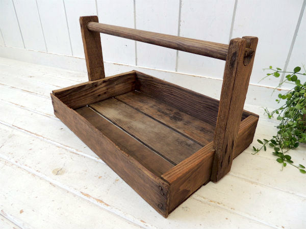 シャビー・木製・ハンドル付き・アンティーク・ツールケース・キャリーケース・木箱・ガーデニング USA