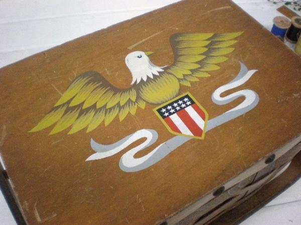カリフォルニアみつけました・・アメリカのソーイング用品会社『DRITZ』の木製ヴィンテージ・ソーイングバスケット(裁縫箱)です。