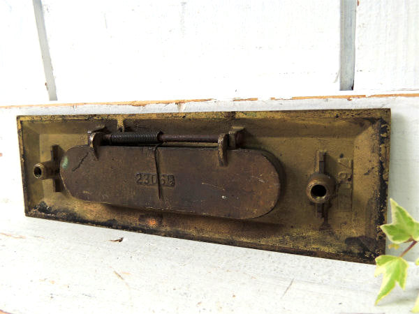 アメリカ中西部の中心部にあるシカゴ郊外・イリノイ州で見つけました・・・・お洒落なデザイン・真鍮製のアンティーク・レターポスト(レタースロット/郵便受け)です。