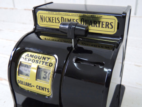 上部ゴールドプレートに【NICKELS・DIMES・QUARTERS】、下部ゴールドプレートに【UNCLE SAM'S ® 3COINS REGISTER BANK】とございます。