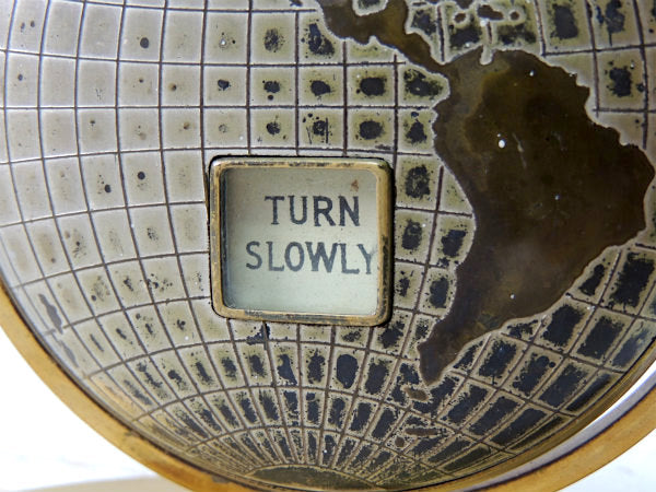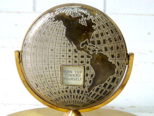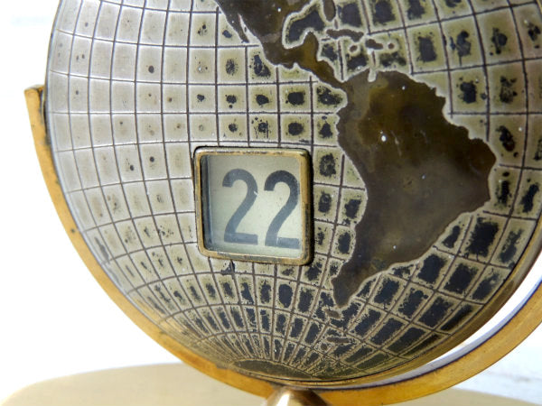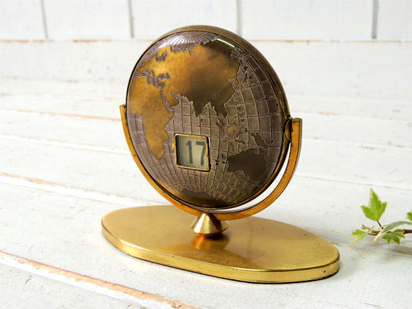 アメリカ中西部の中心部にあるシカゴ郊外で見つけました・・・ゴールドトーン・地球儀型・ノベルティ・ヴィンテージ・デスクカレンダーです。