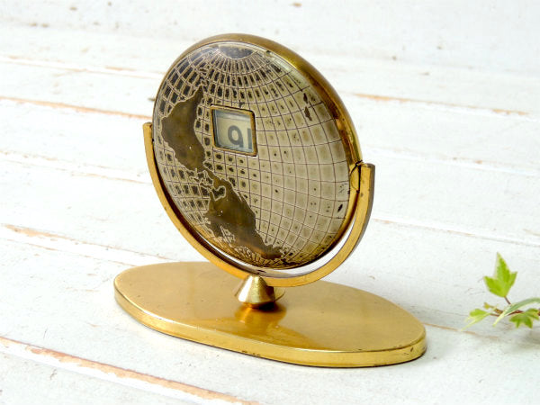 世界地図・ゴールドトーン・地球儀 アメリカンビンテージ デスクカレンダー 卓上カレンダー
