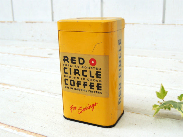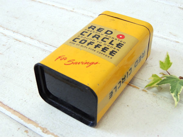 アメリカ中西部・シカゴの田舎町で見つけました・・『RED CIRCLE COFFEE』のティン製・ノベルティ・ヴィンテージ・コインバンク(貯金箱)です。