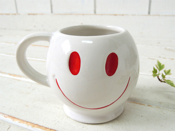 【McCoy】マッコイ・ハッピーフェイス・陶器製・ホワイト・ヴィンテージ・マグカップ・スマイルマグ