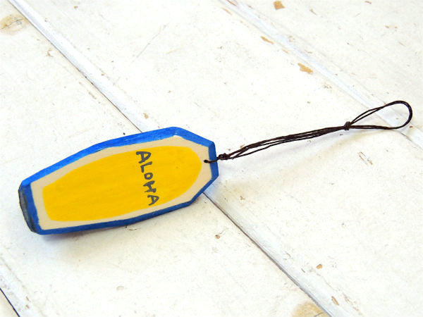 【ALOHA】松田大児・イエロー×ブルー・ハンドメイド・木製・ミニサーフボード・オブジェ
