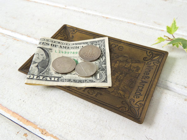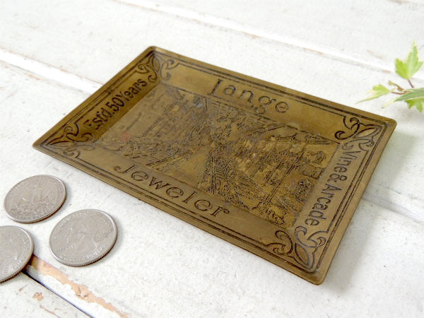 アメリカ中西部・シカゴで見つけました・・”Lange Jeweler”真鍮製・ノベルティ・アンティーク・トレイ(ジュエリー・宝石&ポケットチェンジ)・アドバタイジング です。
