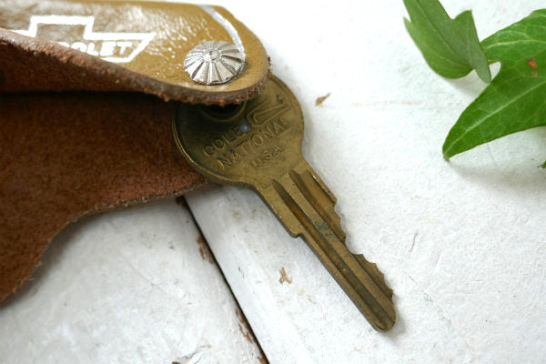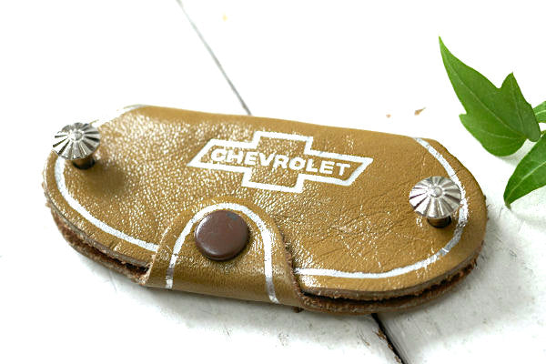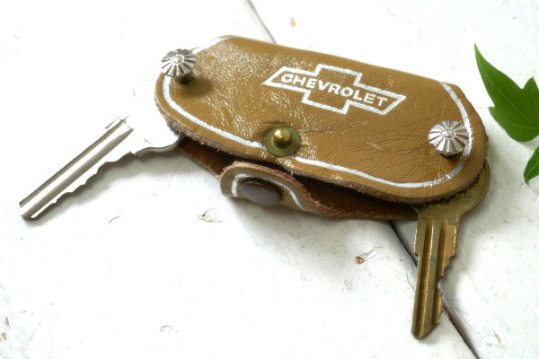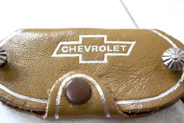 アメリカ合衆国、インディアナ州・インディアナポリス郊外で見つけました・・”シボレー・CHEVROLET”NY・ニューヨーク・ヴィンテージ・アドバタイジング レザー キーケース・USA鍵2個付きです。