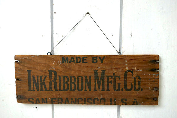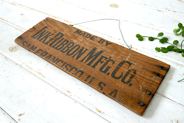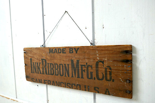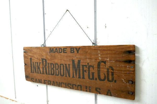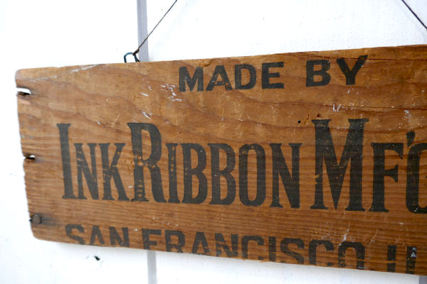 アメリカ西海岸、カリフォルニア、サンフランシスコで見つけました”INK RIBBON MFG CO/SAN FRANCISCO USA”インクリボン・サンフランシスコ・アンティーク・ウッドプレート・木製サイン(看板・壁掛け)です。