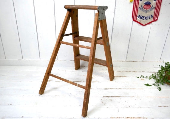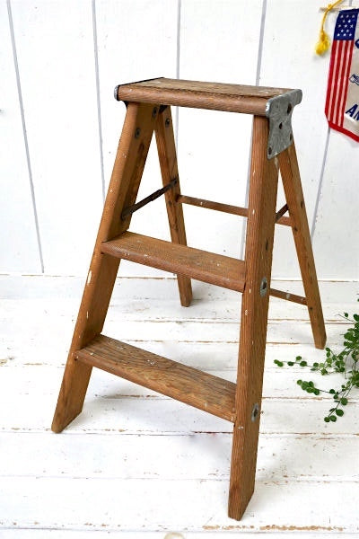 シャビーシック ペンキの付いた木製・アンティーク・OLD・ステップラダー・脚立・ステップツール