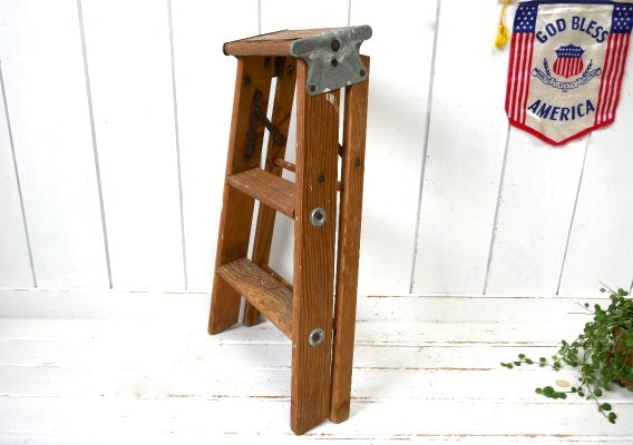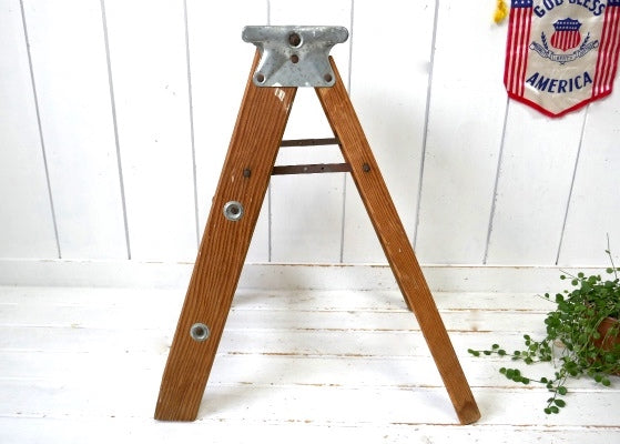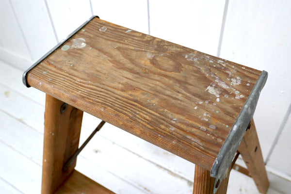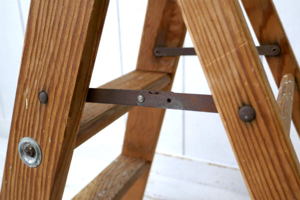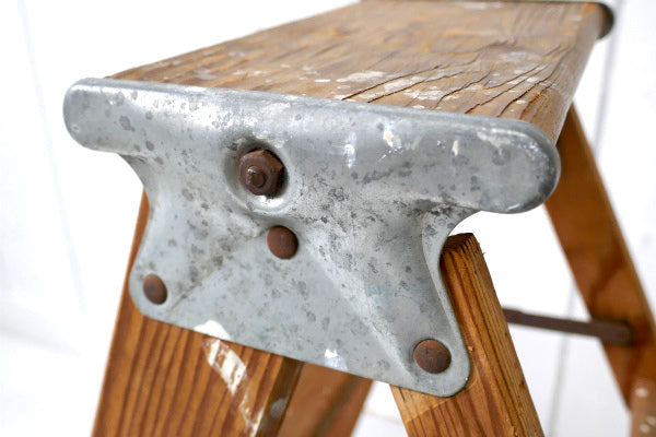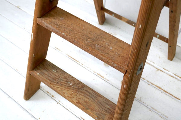 アメリカ中西部・シカゴ郊外で見つけました・・スッキリしたデザイン『Laddercraft Co.』のペンキの付いた木製・アンティーク・ステップラダー(脚立)です。