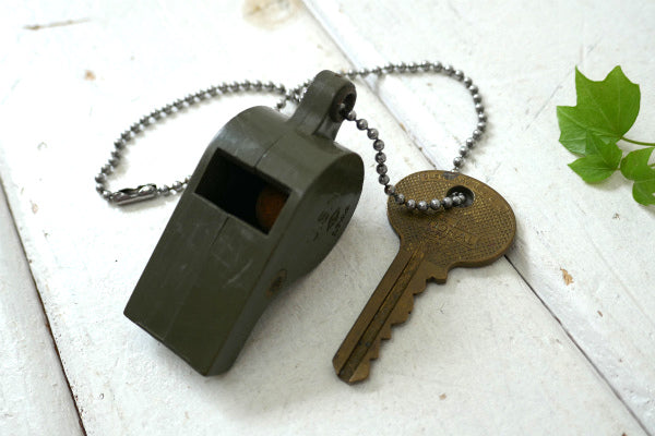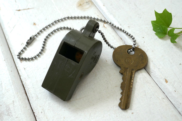 アメリカ西海岸、カリフォルニアでみつけました・・アメリカ海軍”U.S.N. 1944's"ヴィンテージ・オールド・ミリタリー・ホイッスル (呼び笛)+鍵(真鍮製・ナショナルkey)&チェーン付きです。