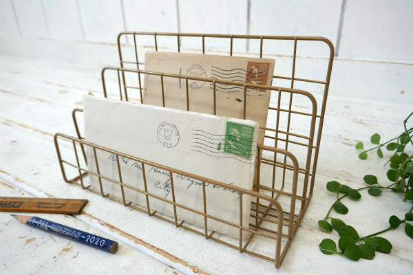 ワイヤー製・3列・ヴィンテージ・レターラック・カードホルダー・書類スタンド・レタースタンド USA