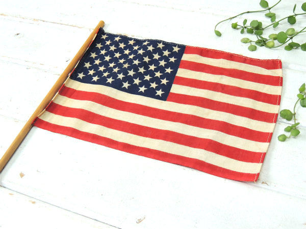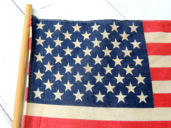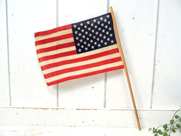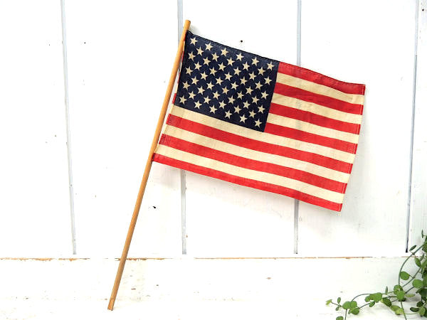 USA・アメリカンフラッグ・50州 星条旗・木製 ポール付き・ヴィンテージ・旗・アメリカ合衆国・看板