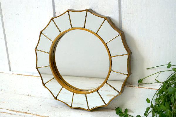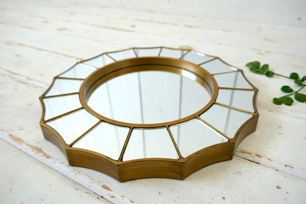 16角形・インレイ・ゴールドフレーム・ヴィンテージ・ミラー・鏡・ウォールデコ・インテリア USA