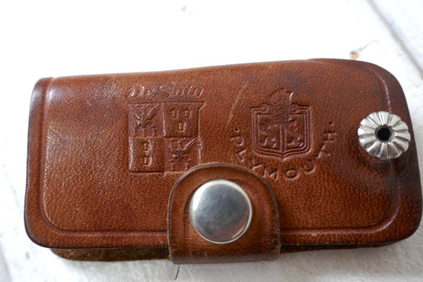 レザー キーケース(革)に【Kribs Motors Inc.....1-7511...PLYMOUTH】と英数字&ロゴが型押しデザインで、入っております。
