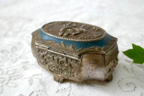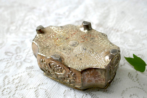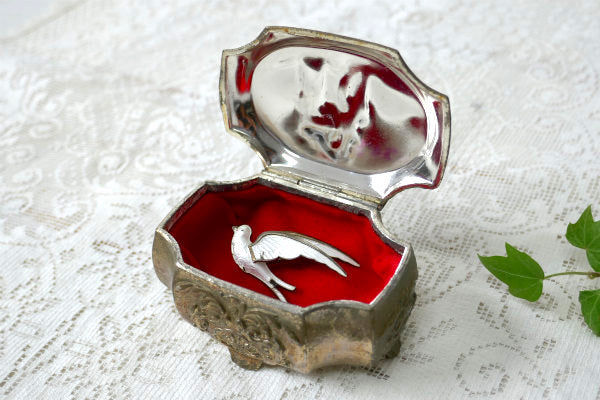 アメリカ中西部・シカゴ郊外で見つけました・・ヴィクトリア朝デザインのシルバープレート・小さなアンティーク・ジュエリーボックスです。