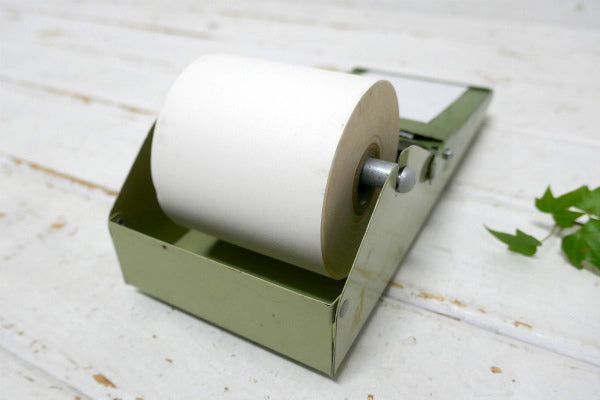 オリーブグリーン・メタル製・ロール式・アドバタイジング・ヴィンテージ・メモホルダー・メモパッド