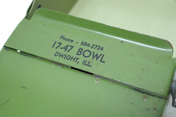アメリカ中西部・イリノイ州・シカゴで見つけました・・『17-47 BOWL』のアドバタイジング・オリーブグリーン・メタル製・ロール式・ヴィンテージ・メモホルダーです。