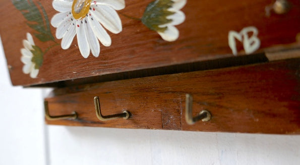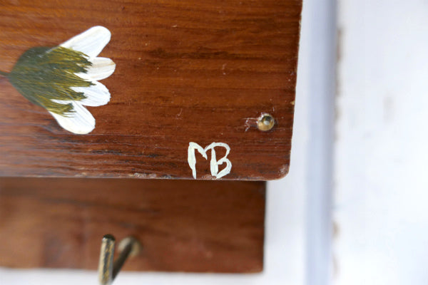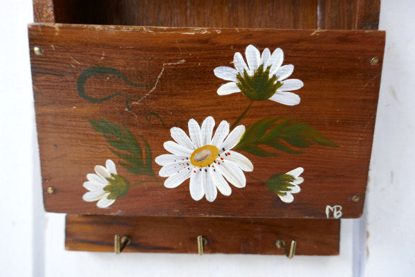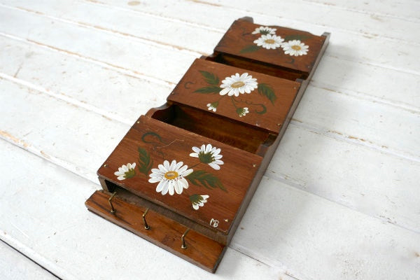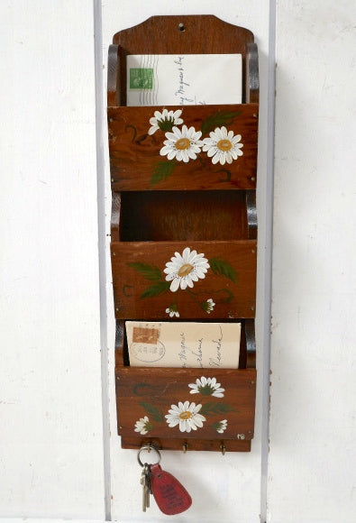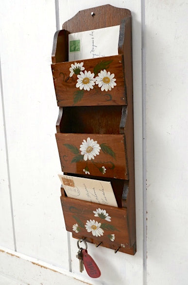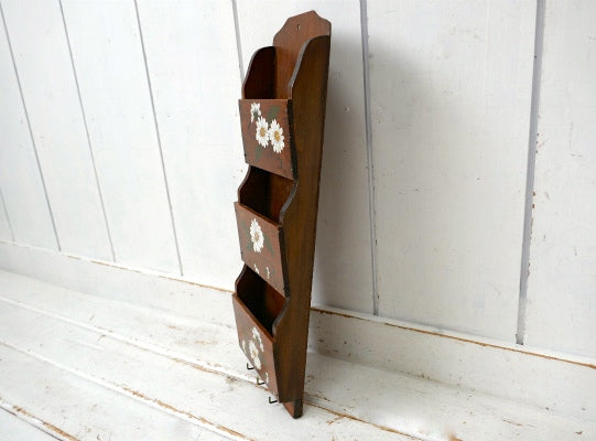 デイジー・花柄・ハンドペイント・3段式&フック付き・ヴィンテージ・レターラック・レターホルダー