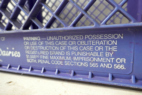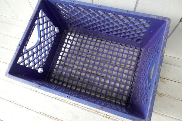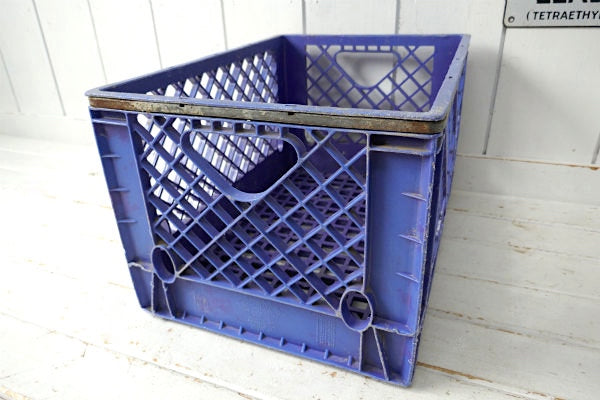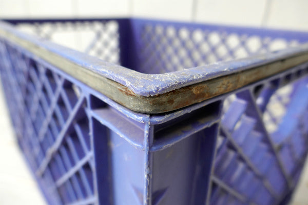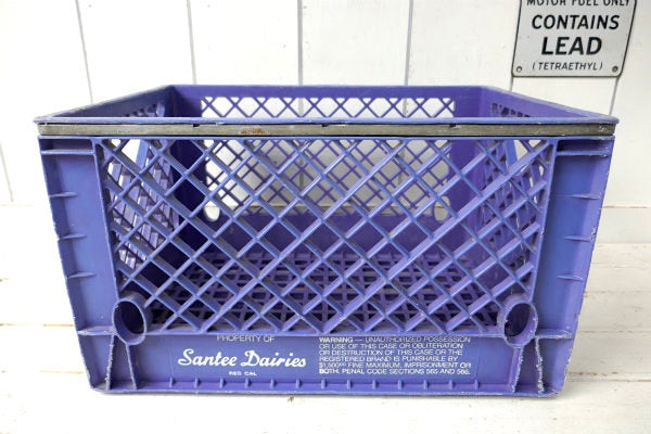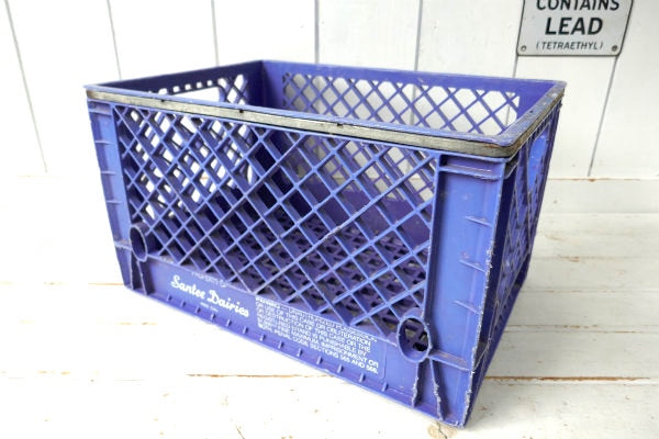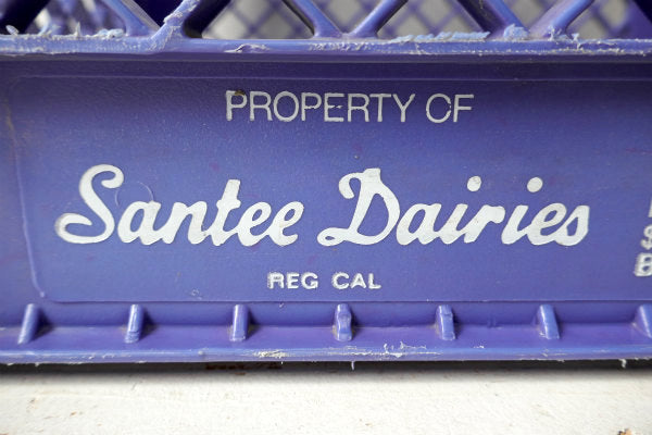 アメリカ西海岸・サンフランシスコで見つけました・・歴史あるデイリーブランド『Santee Dairies』の青色プラスティック製×アイアン製・ヴィンテージ・ミルクボトルケース(MILK CRATE ミルククレート 収納ボックス)です。
