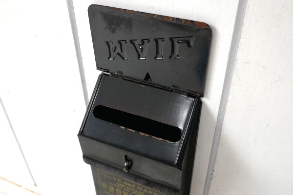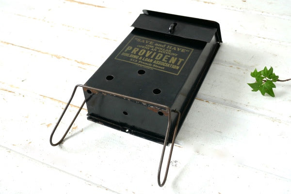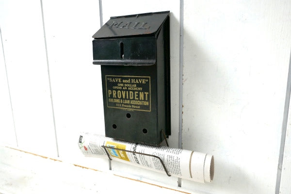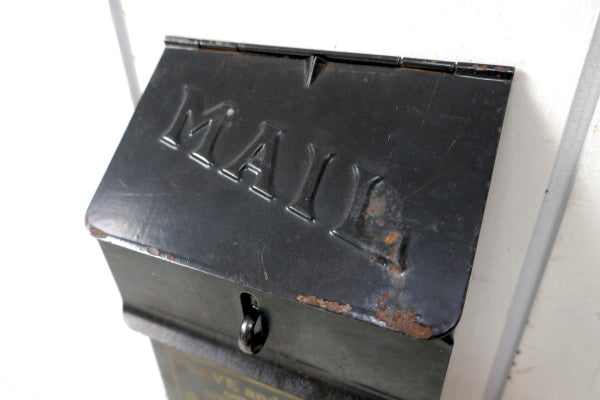 アメリカ中西部・シカゴ郊外で見つけました・・“SAVE and HAVE”ブラック×ゴールド ティン製・アドバタイジング・アンティーク・郵便受け(メールボックス)です。