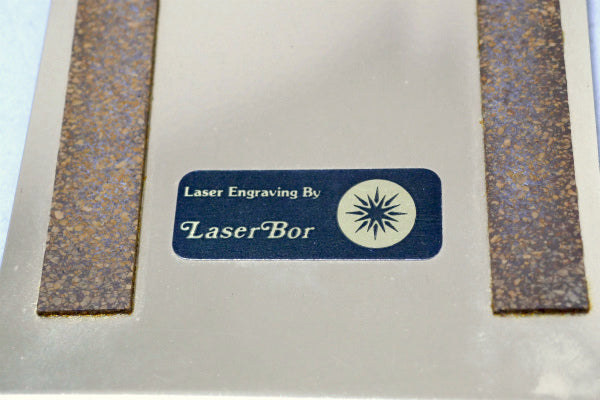 ボトムにコルク製の滑り止めが付いており、ラベルに【SOLID AMERICAN WALNUT】&【Laser Engraving By Laser Bor】とございます。