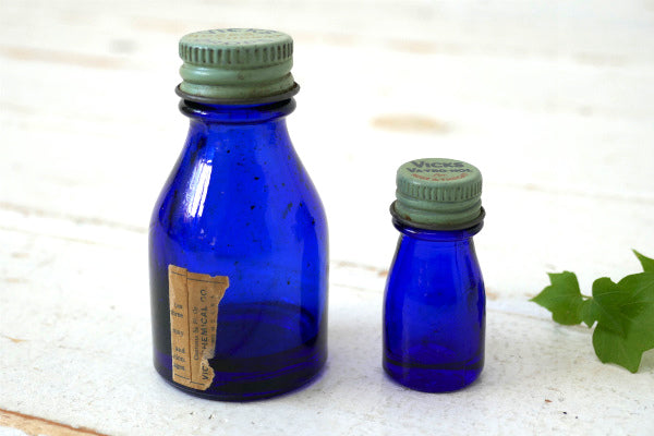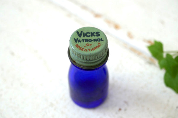 VICKS VA-TRO-NOL・ヴィックス アンティーク・コバルトブルー・小さな ガラス 瓶・薬瓶