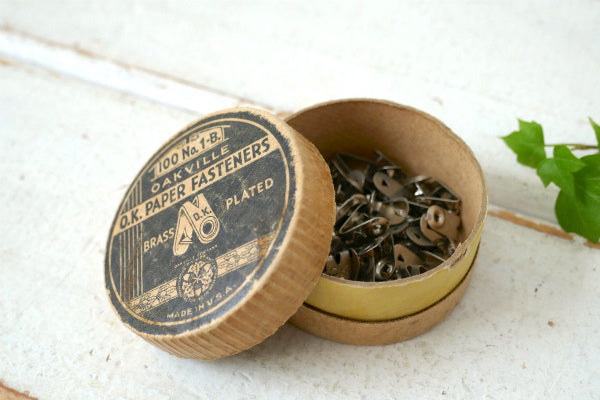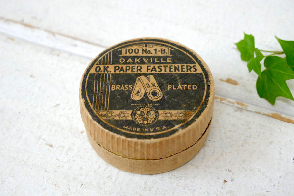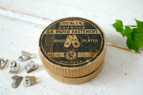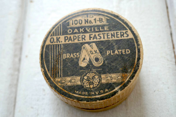 蓋に【100 No.1ーB / OAKVILLE O.K. PAPER FASTENERS BRASS PLATED /OAKVILLE COMPANY DIVISION / MADE IN U.S.A】と文字が入っております。