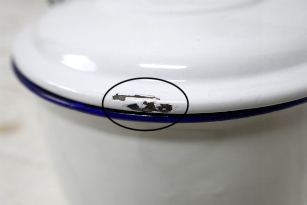 経年による多少のヨゴレ・スリキズ・サビ箇所・蓋のリム数カ所にアタリ・ハンドル根元片方に歪み等ございます。